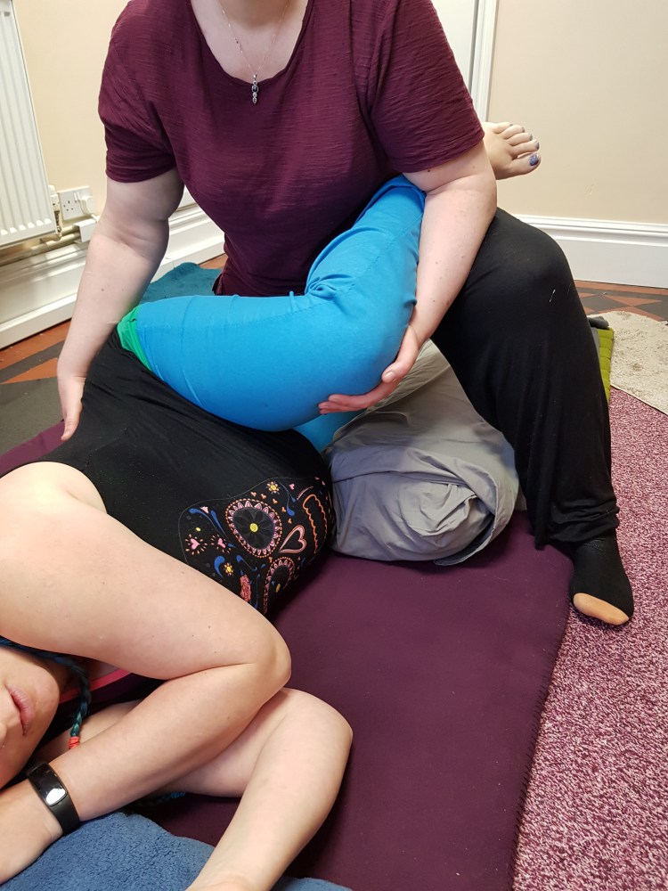 Once you reach the point that lying face down is uncomfortable, your treatment will move on to a futon on the floor where you can relax in to lying on your side for your massage with pillows to support your hip and your bump